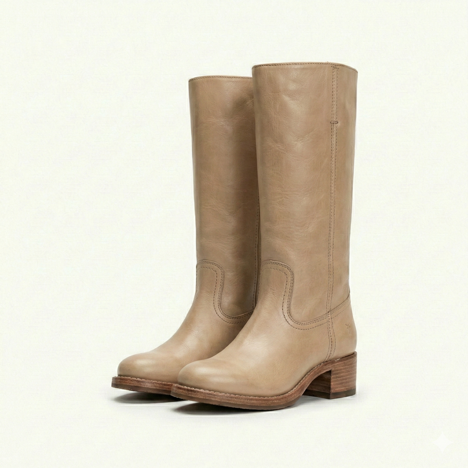 The Ella Leather Knee-High Boots with Heels offer the perfect combination of sophistication and style. Crafted from premium leather, these boots feature a sleek, knee-high design with heels that add a touch of elegance, making them perfect for both formal and casual occasions.